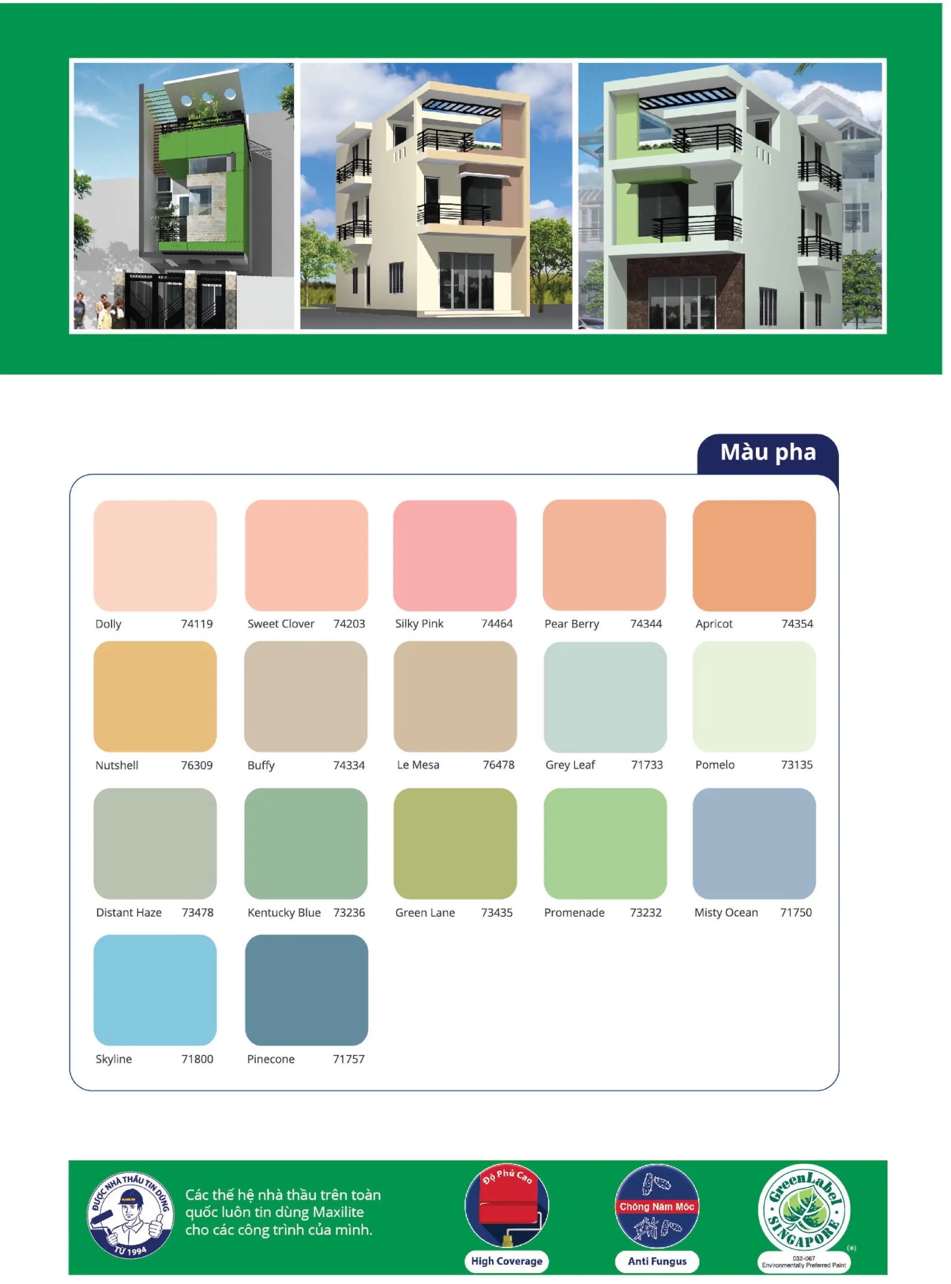 Bảng màu sơn nước ngoại thất Maxilite Ultima