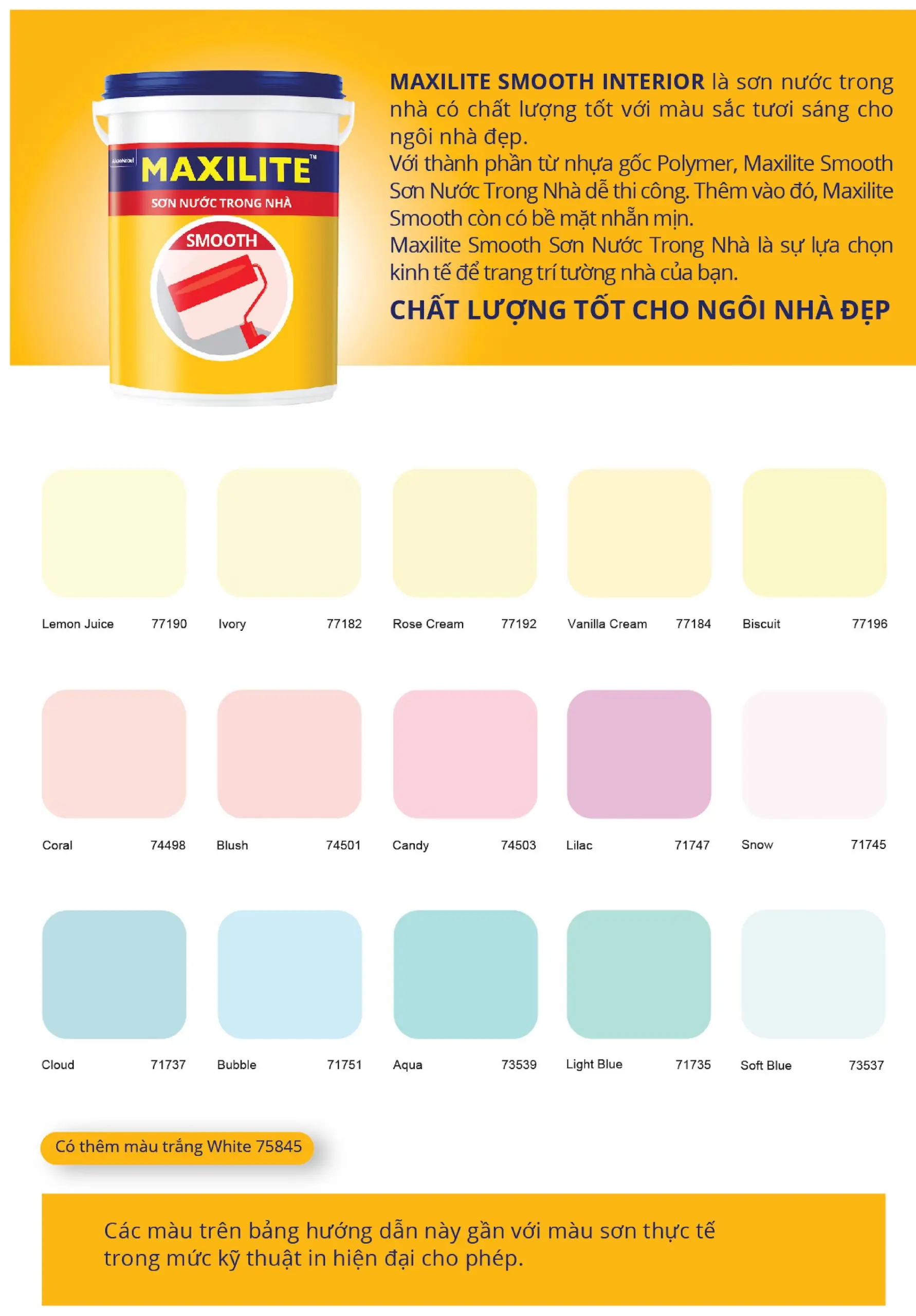 Bảng màu sơn nước trong nhà Maxilite Smooth – Sơn nội thất